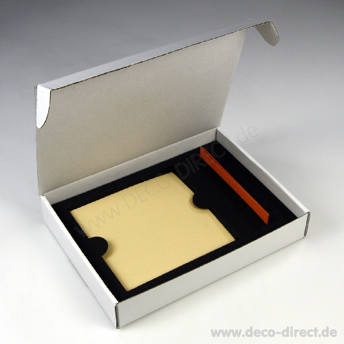 Am nächsten Morgen erteilte dieser den Auftrag für die abgebildete Schiebe-Geschenkverpackung. Die gewünschte Stückzahl wurde sofort produziert und ging noch am selben Tag in den Versand.